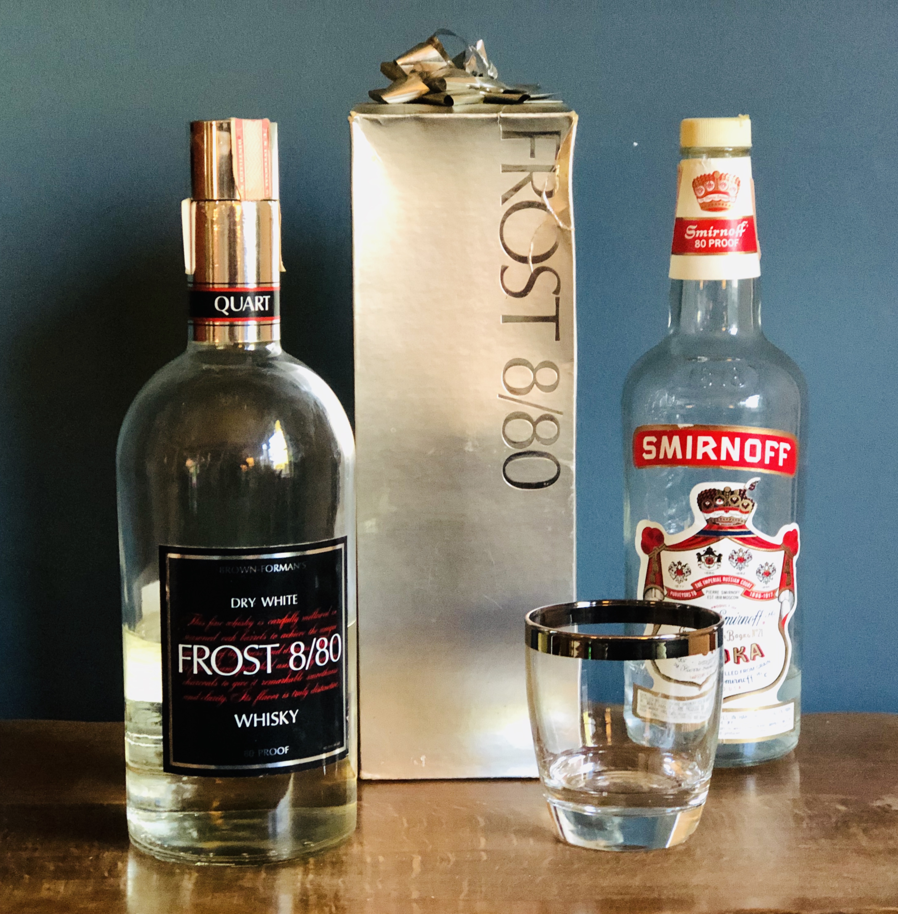 Brown-Forman decided to try something different. They took some 8 year old whiskey made in Pennsylvania and filtered it until there was no color left in the whiskey. Thus, “Frost 8/80”was born. It was as clear as water and bottled at 80 proof. Unfortunately for Brown-Forman, the filtering also removed most of the flavor as well. The only remaining flavor in the whiskey was the flavor of wood. The whiskey tasted of sawdust. The brand was a flop. It was so bad that Brown-Forman recalled all of the bottles from the selves and had it redistilled into ethanol for industrial use. The modern “Whiskey Row” series from Brown-Forman shows that they learned their lesson from Frost 8/80 well! They are not ignoring the great flavors in their whiskey.