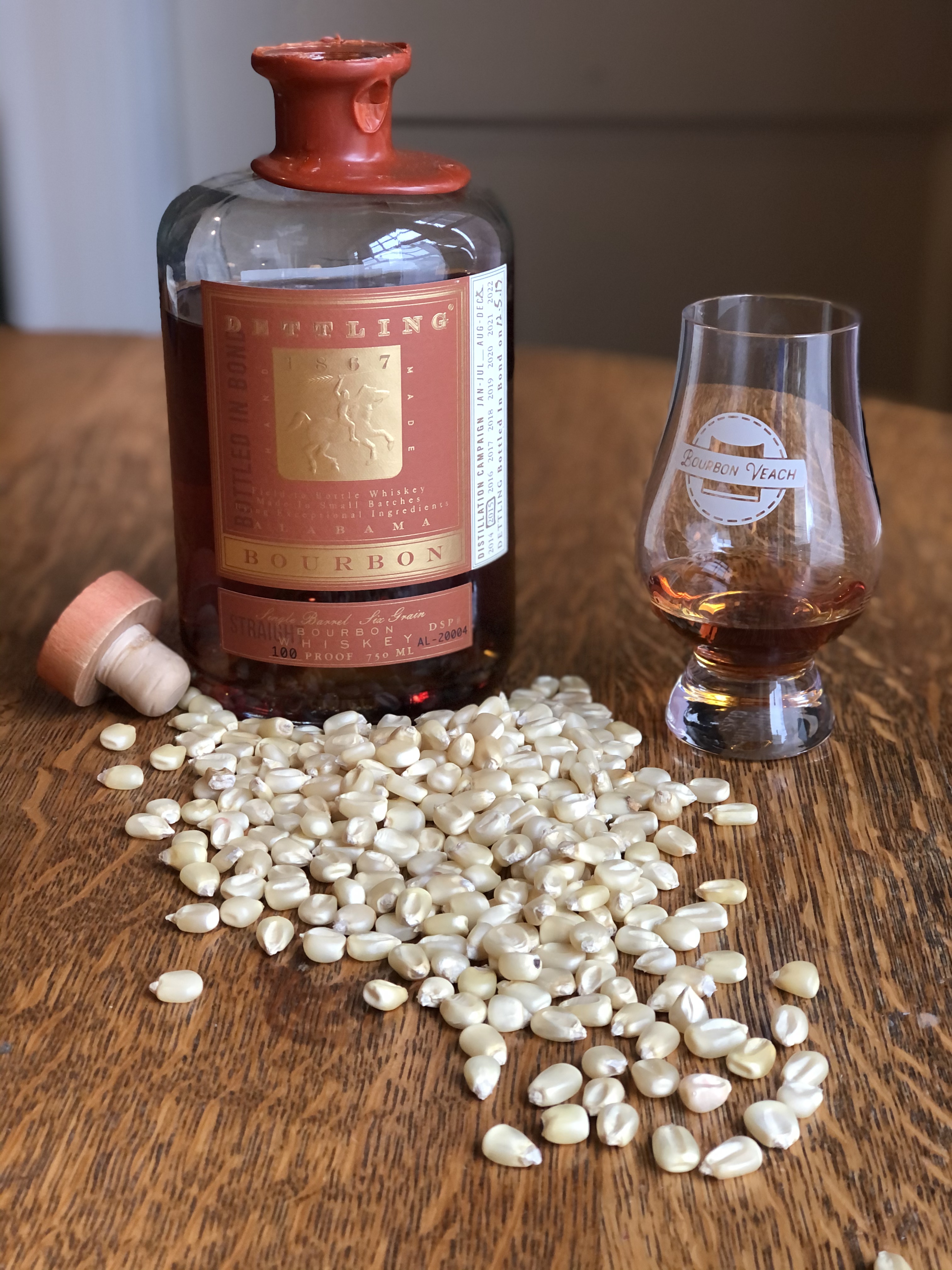 Dettling 1867 Bourbon is the brand of Big Escambia Spirits, LLC., of Altmore, Alabama. The distiller, Seth Dettling, has told me that the variety of white corn that he uses in his Bourbon is the variety of corn he grew up eating as corn bread. He believes that it makes the best corn bread and he sent me some corn meal to try for myself. It does make very good corn bread. I grew up with Hickory Cane white corn, raised by my grandfather in Barren County, Kentucky, and this corn bread, made from the Dettling corn, was almost as good as that made by my grandmother. The Dettling 1867 Bottled-in-Bond Bourbon is made with this white corn. The nose is rich butterscotch, corn, dried apricots, and sweet oak. The taste is corn, apricots French vanilla, ginger and cardamom spices and oak. The finish is long with sweet oak and spices. White corn is not as oily as other varieties of corn and the mouth-feel reflects that fact. Thin but still full of flavor from the corn. I believe the white corn does not contribute as strong a corn flavor and allows other flavors to come through in the whiskey. Once again, a very different flavor than what is found in Bourbons made from yellow corn.