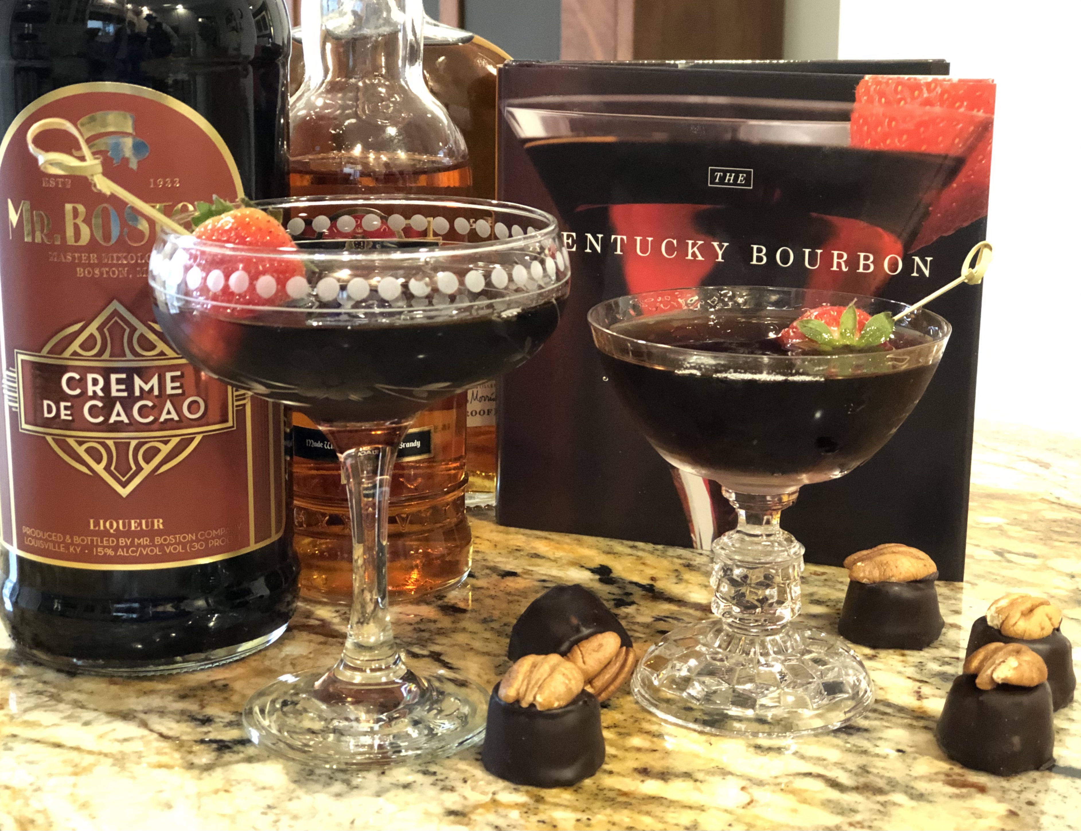 Chocolate and Bourbon has long been a favorite combination. Bourbon Balls and Bourbon Truffles are very common souvenirs from a distillery tour and Art Eatables has built a business around this combination with their nut-free Bourbon Truffles. However, a true Bourbon Ball will contain nuts – usually pecans. I thought I would look at some traditional recipes for Bourbon Balls – the candy and also Joy Perrine’s award-winning recipe for the Bourbon Ball cocktail.