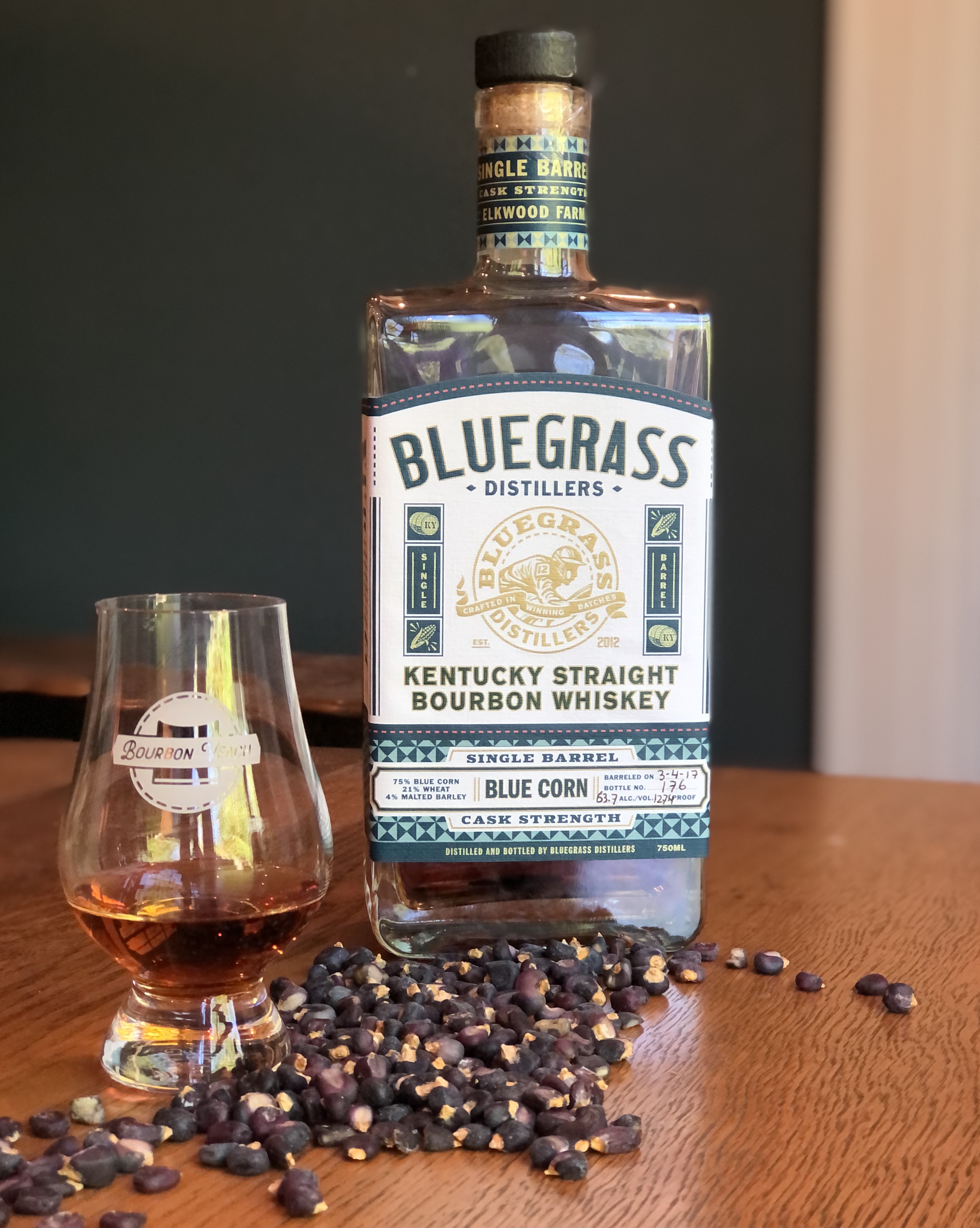 Bluegrass Distillers Blue Corn Bourbon: 75% Blue Corn, 21% wheat, 4% malted barley