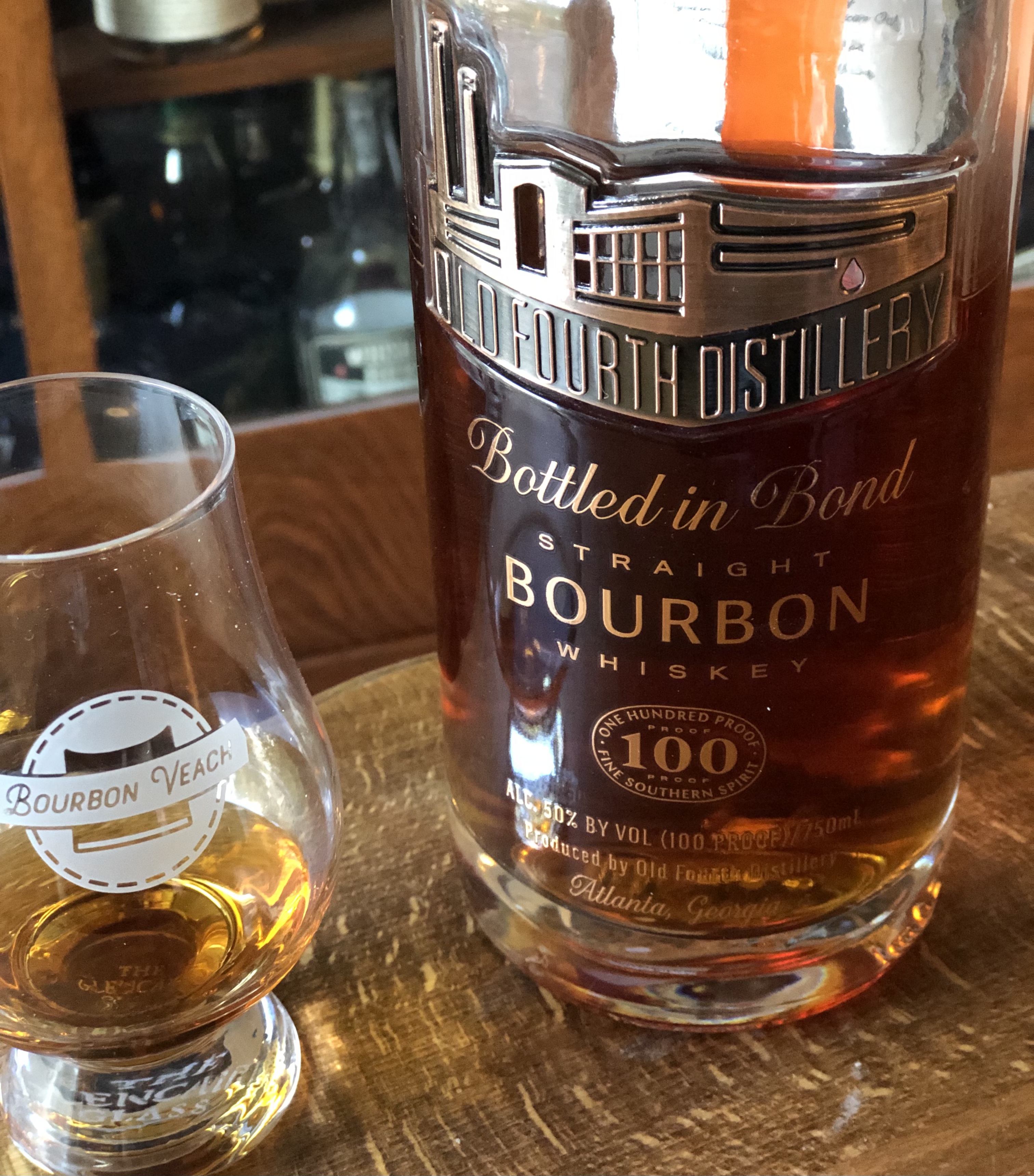 I was recently asked to be hired by an author of historical fiction on her novel about a woman in the distilling industry of today and her great aunt who had worked in the distilling industry when Prohibition was enacted. It is an interesting work of fiction with solid history behind the story. She came to Louisville to visit me and consult on some facts and she and she brought me a bottle of Bourbon from a distillery in Atlanta, Old Fourth Distillery. I had not heard of this distillery or it’s Bourbon, but there was before me, a bottled-in-bond Bourbon to try. My guess is that it is a very regional brand at this point. It is a very good Bourbon and here are our notes.